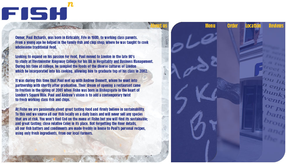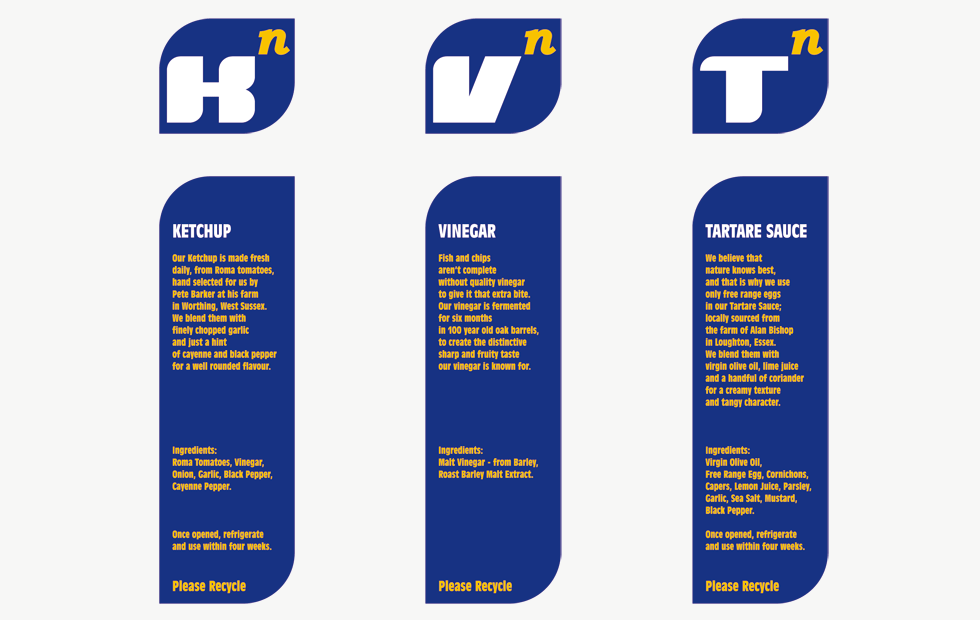 Identity and branding for an experimental fish and chip shop in London's Square Mile. Designed to appeal to young male professionals.